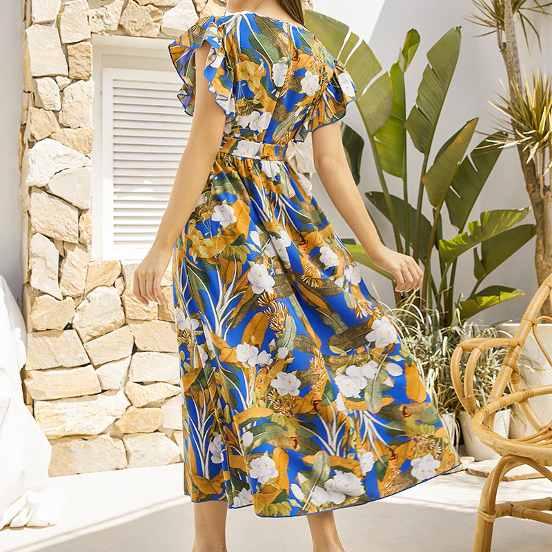 Women’s Ruffle Sleeve Dress Temperament Floral Dress